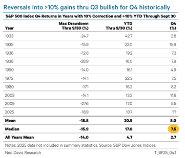 The volatility episode in April–May is now viewed as a healthy reset. Market breadth has since widened, and technical conditions remain supportive into year-end. Seasonally, the fourth quarter tends to favor gains, buoyed by easing financial conditions and improving investor confidence.